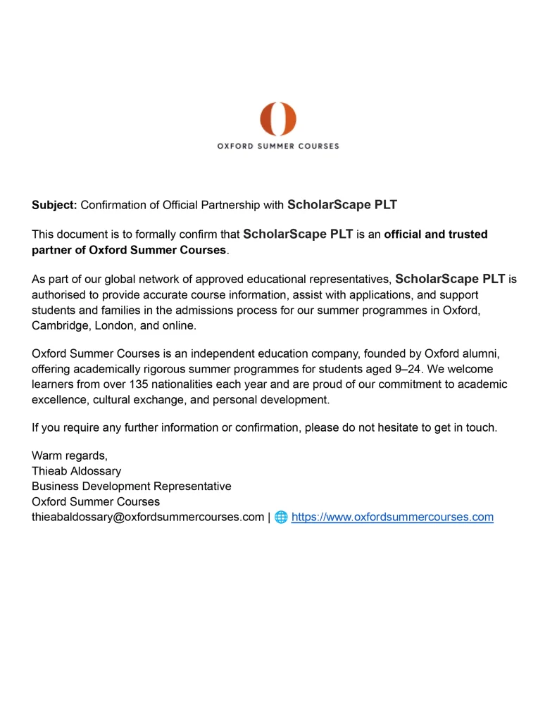 We’re proud to partner with Oxford Summer Courses, an award-winning provider of academic summer programs that deliver the magic of Oxford-style learning to students around the world. Designed for ages 9–24, their courses combine world-class teaching, rich cultural experiences, and an intimate learning environment inspired by the tutorial methods of Oxford University.